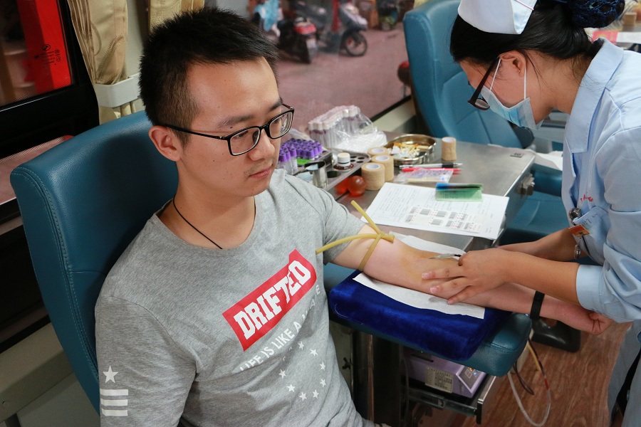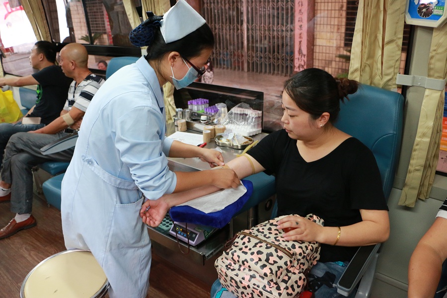 “近日,上饒市委辦公廳、市政府辦公廳聯(lián)合下發(fā)了《關(guān)于全市各級機關(guān)、企事業(yè)單位人員帶頭參加無償獻血的通知》,我們這才知道夏季氣溫高,參與街頭獻血的人員急速下降,血庫出現(xiàn)‘血荒’現(xiàn)象。為了緩解血庫的用血情況,也為了履行企業(yè)的社會責任。一周前我們公司就開始組織這次無償獻血活動,并得到了集團公司員工的積極響應?!笔谐峭都瘓F公司工會主席徐敏這樣告訴記者。記者看到該公司還十分貼心地為每一位前來參加獻血活動的員工準備了面包、牛奶等早餐,幫助員工恢復體力。