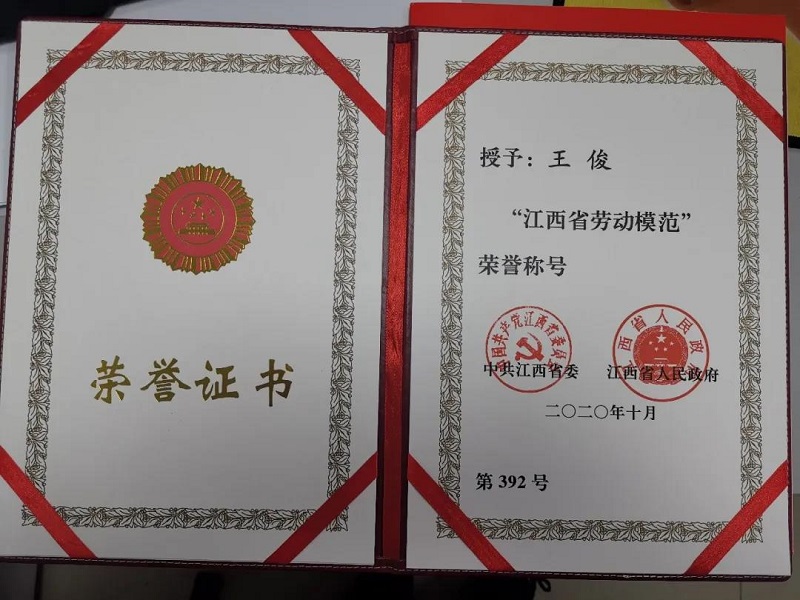 我集團(tuán)公司總經(jīng)理助理、公交集團(tuán)公司黨總支書記、董事長王俊同志榮獲“江西省勞動模范”榮譽(yù)稱號。這是王俊同志繼2019年榮獲“省五一勞動獎?wù)隆狈Q號后榮獲的又一殊榮。