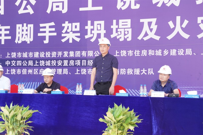 為進(jìn)一步完善工程項(xiàng)目應(yīng)急救援體系和應(yīng)急預(yù)案的可行性、緊密性和可靠性,提高參建單位應(yīng)對(duì)突發(fā)事件能力,切實(shí)保障一線施工人員的生命財(cái)產(chǎn)安全,6月30日上午,市城投集團(tuán)聯(lián)合中交四公局公司在龍?zhí)缎浅琼?xiàng)目開展腳手架坍塌及火災(zāi)應(yīng)急演練。集團(tuán)黨委委員、副總經(jīng)理王漢祥、李仁慶,市住房和城鄉(xiāng)建設(shè)執(zhí)法支隊(duì)支隊(duì)長(zhǎng)、安監(jiān)站站長(zhǎng)汪益民,市城投集團(tuán)項(xiàng)目管理部及各項(xiàng)目負(fù)責(zé)人,龍?zhí)缎浅琼?xiàng)目參建單位相關(guān)負(fù)責(zé)人出席演練活動(dòng)。