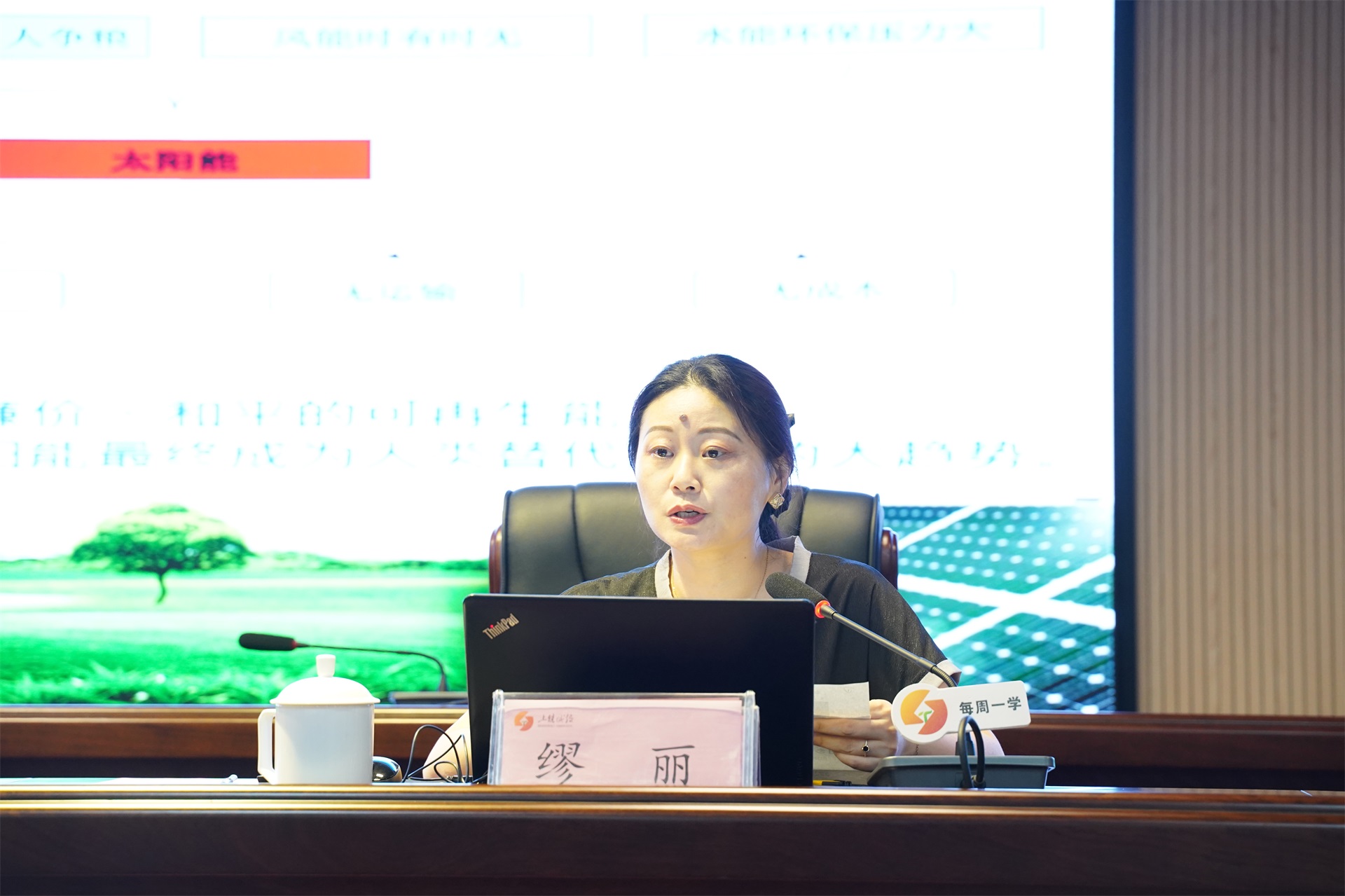 會上,繆麗作《簡述光伏發(fā)展及應用》專題授課,對光伏的定義、發(fā)展歷程和相關政策作了詳細闡述,并對太陽能光伏在交通、通訊、石油、氣象、發(fā)電、節(jié)能等領域的應用情況一一予以講解。她指出,光伏產(chǎn)業(yè)是推動我國能源變革的重要引擎,也是新能源的重要組成部分。