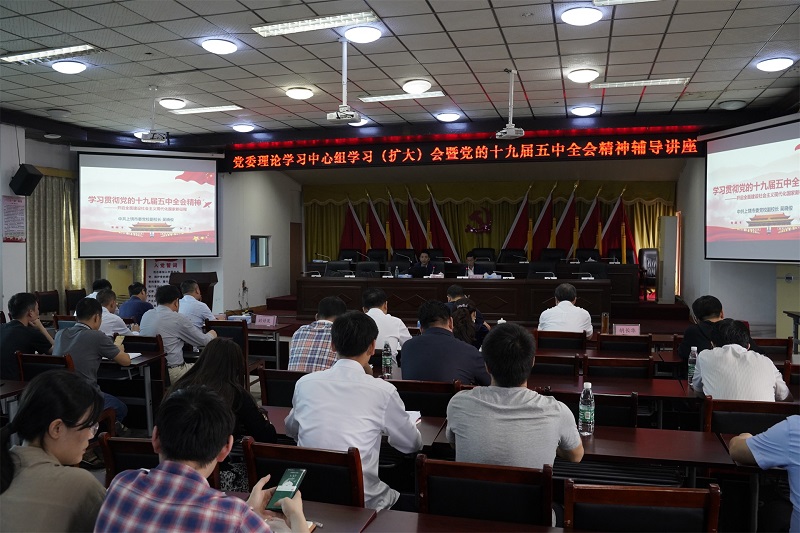 為進(jìn)一步深入貫徹落實(shí)黨的十九屆五中全會精神,提高廣大黨員干部立足新發(fā)展階段、貫徹新發(fā)展理念、構(gòu)建新發(fā)展格局的政治能力、戰(zhàn)略眼光和專業(yè)水平,5月20日,上饒市城投集團(tuán)舉辦黨委理論學(xué)習(xí)中心組學(xué)習(xí)(擴(kuò)大)會暨黨的十九屆五中全會精神輔導(dǎo)講座,邀請上饒市委黨校教授、講師團(tuán)講師吳曉俊專題授課,全體在家高管、各黨(總)支部書記、部門及子公司負(fù)責(zé)人參加此次會議。
