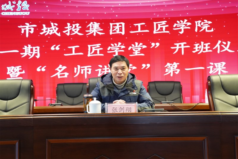 為響應(yīng)市委市政府人才強(qiáng)市戰(zhàn)略,打造一批與城投集團(tuán)發(fā)展相適應(yīng)的實(shí)干、創(chuàng)新、知識型城投工匠,2月24日上午,城投集團(tuán)舉辦工匠學(xué)院首期名師講堂培訓(xùn)班,特邀住建局黨委委員、副局長張劍翔授課。集團(tuán)黨委書記、董事長黃海,黨委委員、副總經(jīng)理王漢祥、占峰、胡斌、李仁慶,副總經(jīng)理汪世清出席開班儀式。