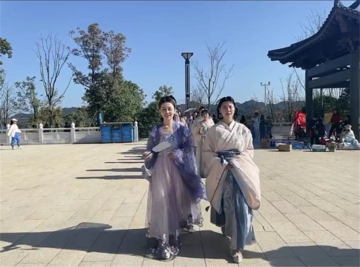 點花鈿、描青黛、一襲襦裙霓裳,曲裾輕舞,這些曾經(jīng)只出現(xiàn)在電視節(jié)目中的畫面,今天也在交通樞紐精彩上演!