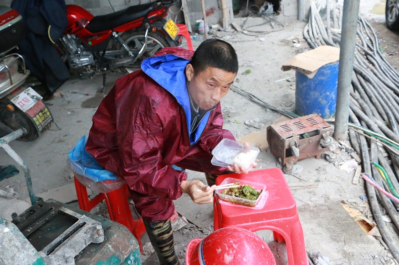 24--3#洞外,雨天,工人為保障試水,匆匆吃過午飯