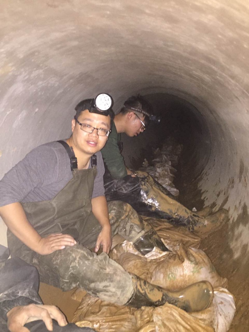 22--工程師在逼仄的管道內(nèi)清淤,在1.2m直徑的管道內(nèi),工人常會覺得腰酸背痛。