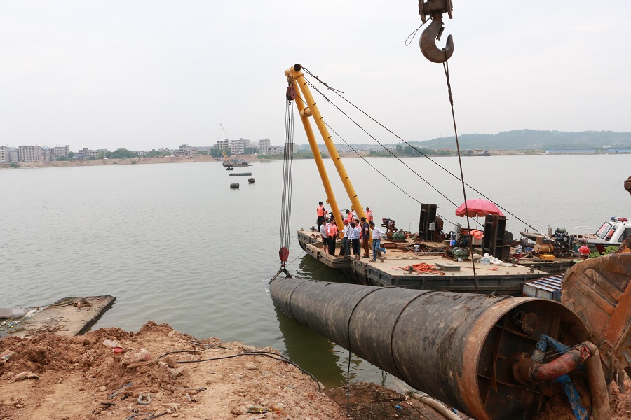 2017年5月22日,上饒市城市供水引水城西支線工程跨信江倒虹吸管沉管開(kāi)始下水鋪設(shè)。