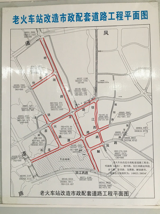 據(jù)了解,上饒老火車站改造的市政配套7條道路總長5092.424米,工程總造價(jià)約1.266億元。德興路從龍?zhí)堵分磷虾罚L432.4米;茶圣路從龍?zhí)堵分列沤髀?,全長601.29米;創(chuàng)業(yè)路從明淑路到廣信東路,長342.944米;明叔路南汽濱江西路,北至鳳凰大道,全長1673米;龍?zhí)堵窎|起安平路,西至廣信大道,長1200米;解放路從信江西路到明叔路,長174.644米。7條道路均設(shè)計(jì)為寬30米,雙向4車道的城市次干道。