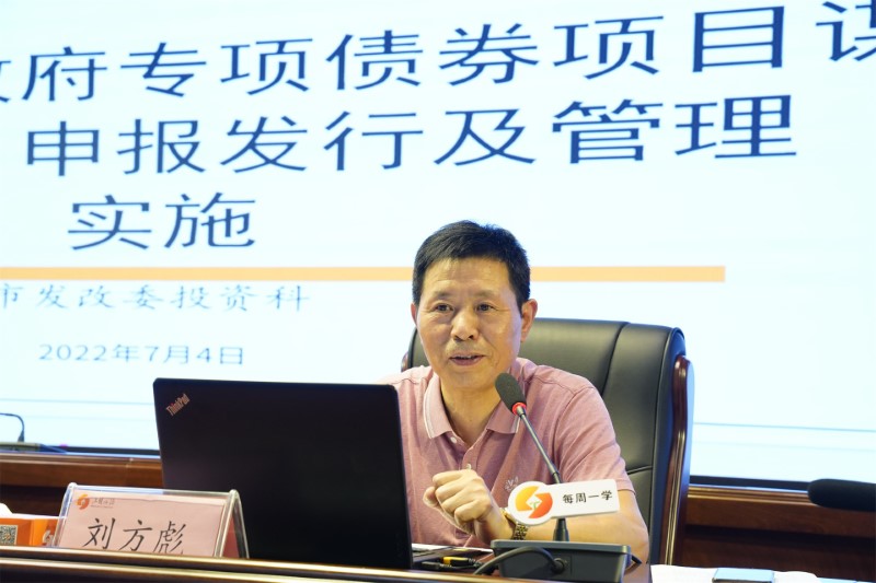 7月4日晚19時,市城投集團(tuán)第七期“每周一學(xué)”專題學(xué)習(xí)會準(zhǔn)點(diǎn)開課,此次學(xué)習(xí)會邀請了市發(fā)改委投資設(shè)審科科長劉方彪作《如何做好政府專項(xiàng)債券項(xiàng)目的謀劃儲備、申報(bào)發(fā)行及管理實(shí)施》專題授課。集團(tuán)黨委書記、董事長黃海,黨委副書記、總經(jīng)理江宇出席,全體高管,各一級子公司班子成員,機(jī)關(guān)各部門全體干部員工參會。會議由黨委副書記劉詩發(fā)主持。