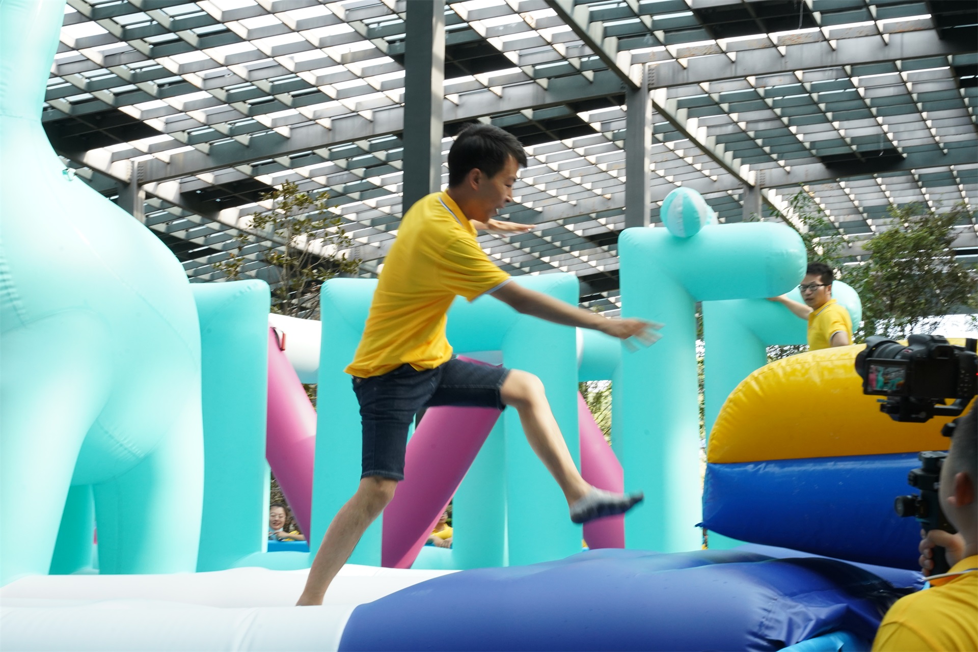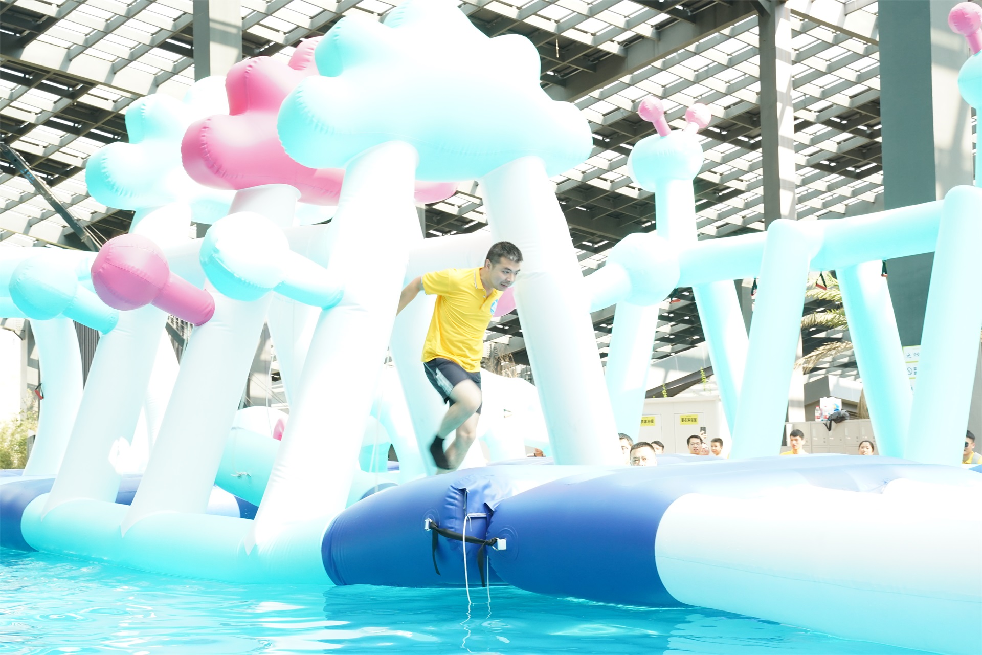 隨著主持人的一聲令下,比賽正式開(kāi)始。此次水上闖關(guān)比賽共有“貪吃蛇、長(zhǎng)頸鹿吊環(huán)、藤網(wǎng)攀爬、松果小道、斑馬障礙、螃蟹側(cè)沿、穿越森林、大象鉆洞”等八個(gè)環(huán)節(jié),只要在規(guī)定時(shí)間內(nèi)完成比賽,就可以獲得景區(qū)門(mén)票、年卡、大禮盒等精美獎(jiǎng)品,排名前五的選手還將進(jìn)入總決賽角逐大獎(jiǎng)。