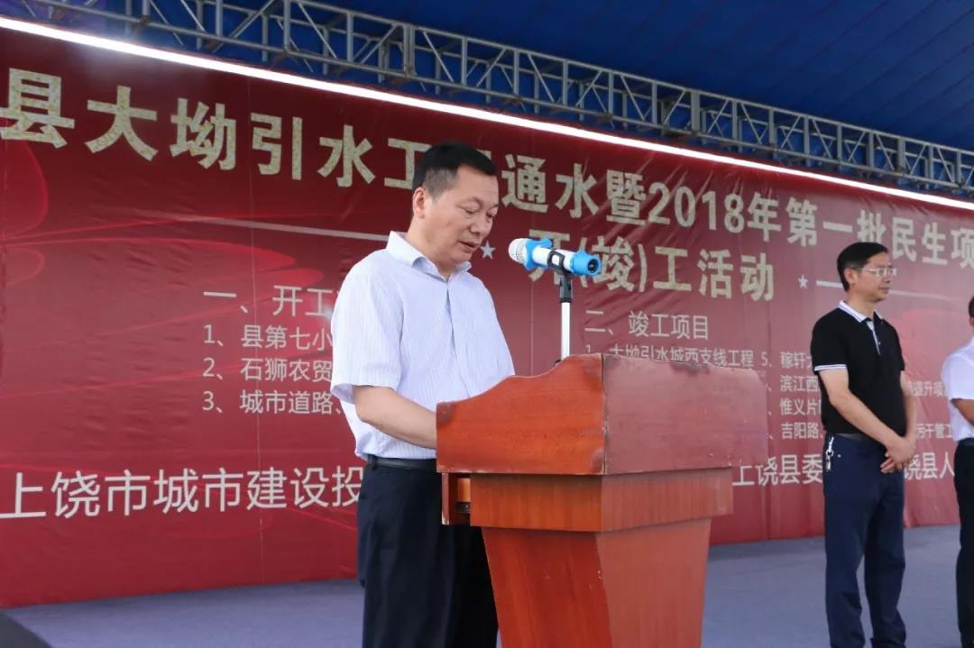 7月6日上午,上饒縣大坳引水工程通水活動(dòng)在上饒縣城南自來(lái)水廠舉行。市城投集團(tuán)公司黨委書記、董事長(zhǎng)詹曉華介紹了項(xiàng)目情況。上饒縣縣委書記熊孫魁宣布引水工程城西支線通水。