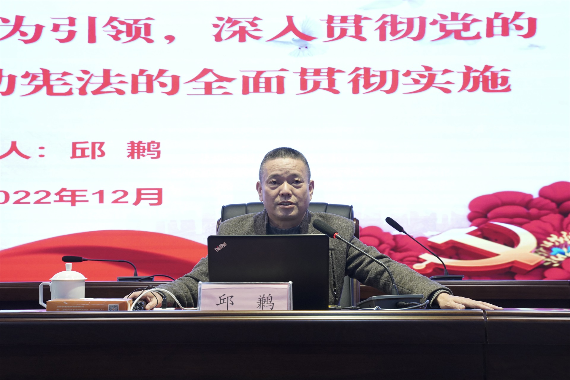 邱鶼講解了我國憲法的基本理論,詳細闡述了習近平總書記關(guān)于憲法的重要論述,習近平法治思想核心要義,以及二十大報告中關(guān)于法治的重要論述,并結(jié)合“孫志剛事件”、“唐慧事件”等典型憲法事例,深入剖析了憲法學習和宣傳教育的重要意義。