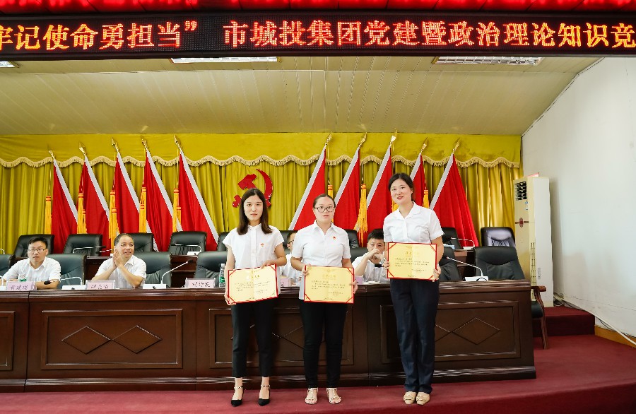 為進(jìn)一步增強(qiáng)黨組織凝聚力、戰(zhàn)斗力,推動(dòng)廣大黨員干部全面系統(tǒng)加強(qiáng)黨建知識(shí)和政治理論學(xué)習(xí),市城投集團(tuán)公司于7月24日下午舉行了“不忘初心強(qiáng)學(xué)習(xí),牢記使命勇?lián)?dāng)” 黨建暨政治理論知識(shí)競賽。集團(tuán)公司黨委副書記劉詩發(fā)為比賽致開幕詞,黨委委員、紀(jì)委書記黃誠,黨委委員、副總經(jīng)理胡長華出席比賽并為獲獎(jiǎng)代表隊(duì)頒獎(jiǎng)。