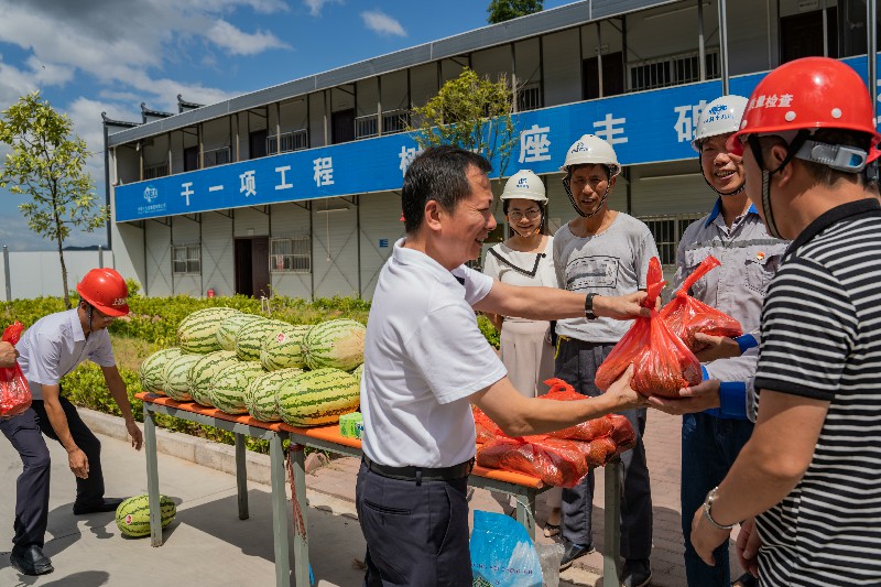 連日來,我市持續(xù)高溫炎熱天氣,為了做好防暑降溫工作,8月9日上午,市城投集團(tuán)公司工會開展了“夏日送清涼”活動,集團(tuán)公司黨委書記、董事長詹曉華,黨委副書記劉詩發(fā)分別帶隊深入項目現(xiàn)場慰問,為堅守在項目建設(shè)一線的干部職工送去清涼和關(guān)懷。黨委委員、副總經(jīng)理、工會主席胡斌,黨委委員、副總經(jīng)理胡長華,工會副主席廖玉華分別參加走訪慰問。