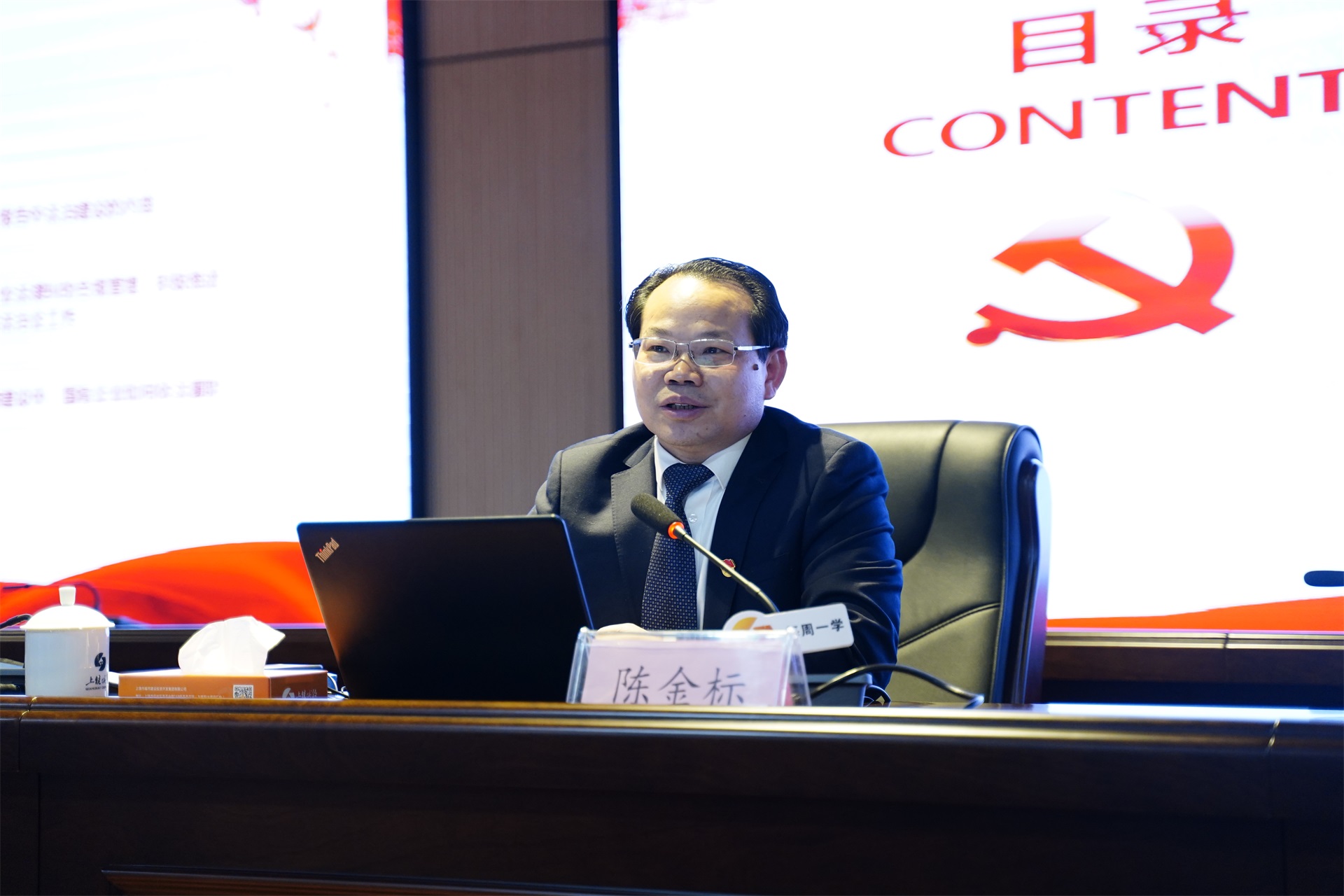 3月13日,市城控集團(tuán)舉辦第14期“每周一學(xué)”專題學(xué)習(xí)會(huì),會(huì)議邀請(qǐng)江西賢和律師事務(wù)所黨支部書(shū)記、主任陳金標(biāo)作《學(xué)習(xí)貫徹黨的二十大精神 積極推進(jìn)國(guó)有企業(yè)依法治企》專題授課。集團(tuán)高管,助理級(jí)以上干部,機(jī)關(guān)各部門(mén)全體員工參會(huì)。會(huì)議由黨委副書(shū)記顏紅華主持。