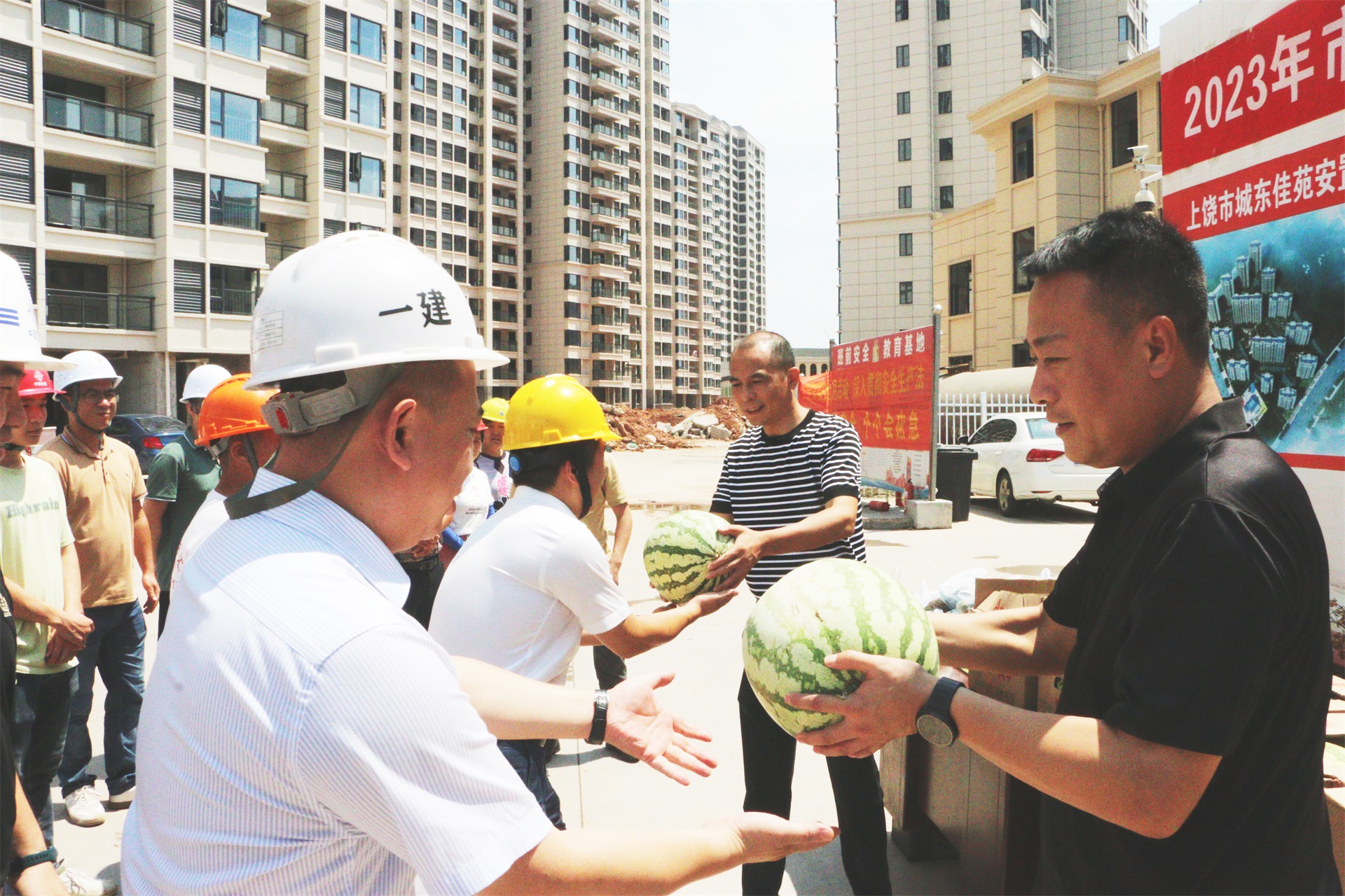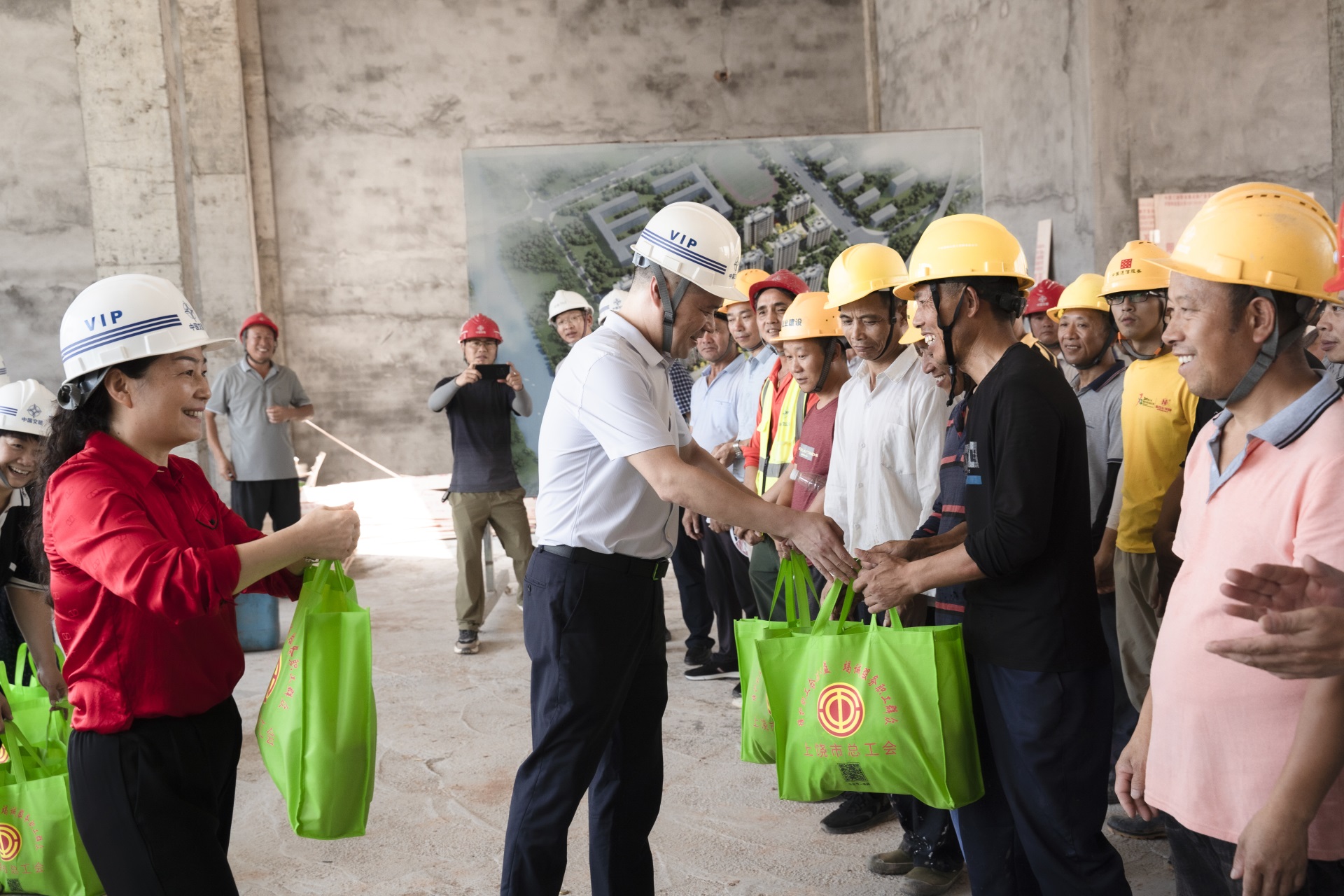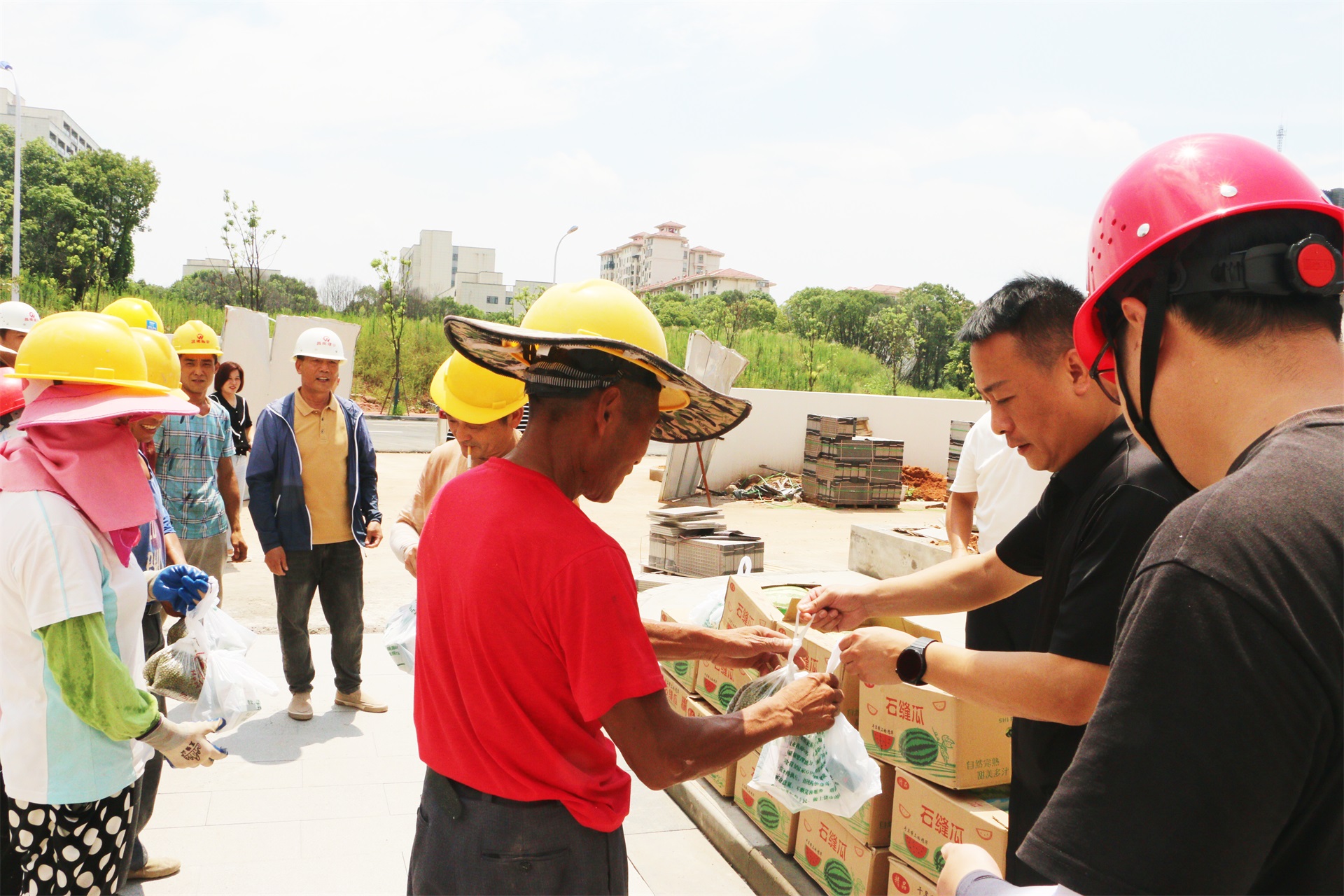 吳曙一行深入了解項(xiàng)目建設(shè)進(jìn)展情況和工人生產(chǎn)生活情況,對(duì)大家在高溫下堅(jiān)守工作崗位的責(zé)任和擔(dān)當(dāng)給予了充分的肯定,叮囑大家要做好防暑降溫措施,為他們送去了降暑慰問品。