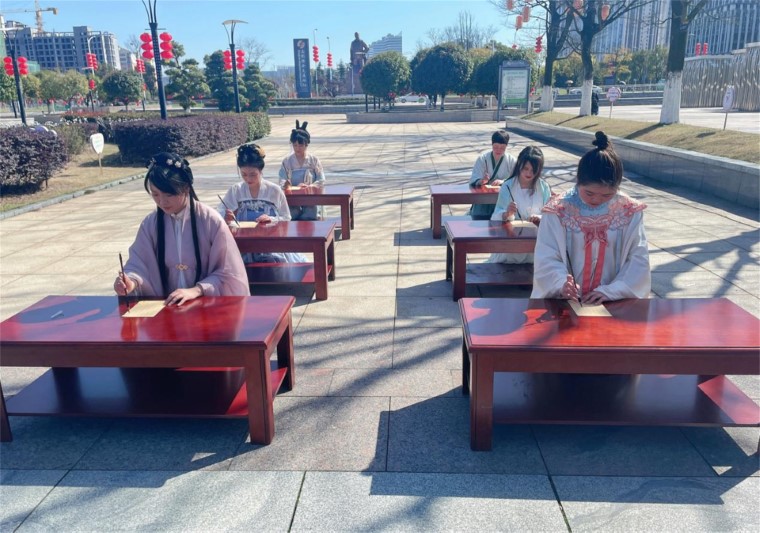 往這邊瞧!平日里嚴(yán)謹(jǐn)細(xì)致奮戰(zhàn)在一線的女職工們今日身著各式各樣的漢服在交通樞紐站前廣場進(jìn)行著書法展示。大家紛紛用充滿靈性的筆觸,揮灑丹青,杼寫詩意,獨具風(fēng)骨的書法,吸引了不少旅客和周邊群眾的駐足觀看。緊接著,大家集體了學(xué)習(xí)中華傳統(tǒng)文化《女訓(xùn)》和《女論語》,以古典文學(xué)為核心,通過領(lǐng)學(xué)誦讀的方式引導(dǎo)大家深刻感悟愛國愛家、厚德明理、敬業(yè)奉獻(xiàn)、勤勞節(jié)儉的良好德行,朗朗讀書聲不絕于耳,描繪出上饒站一副優(yōu)美的古風(fēng)畫卷......對弘揚傳統(tǒng)文化,提升民族文化素養(yǎng),踐行社會主義核心價值觀具有深遠(yuǎn)的意義。