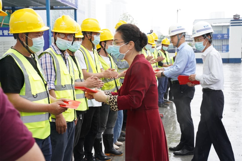 在項(xiàng)目現(xiàn)場(chǎng),吳曙實(shí)地查看了施工進(jìn)展情況,與一線職工們親切交談,詢問(wèn)他們的工作生活情況,對(duì)他們節(jié)日期間依然堅(jiān)守一線、愛(ài)崗敬業(yè)的奉獻(xiàn)精神表示衷心感謝,并為他們送上了慰問(wèn)金和節(jié)日的祝福。